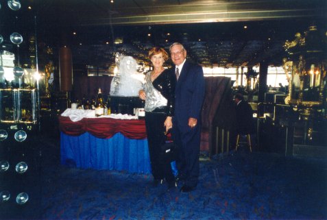 Here are Dee and Carrol in the entrance to the diningroom. This night was formal. I should mention that this lovely couple celebrated their anniversary while onboard. |